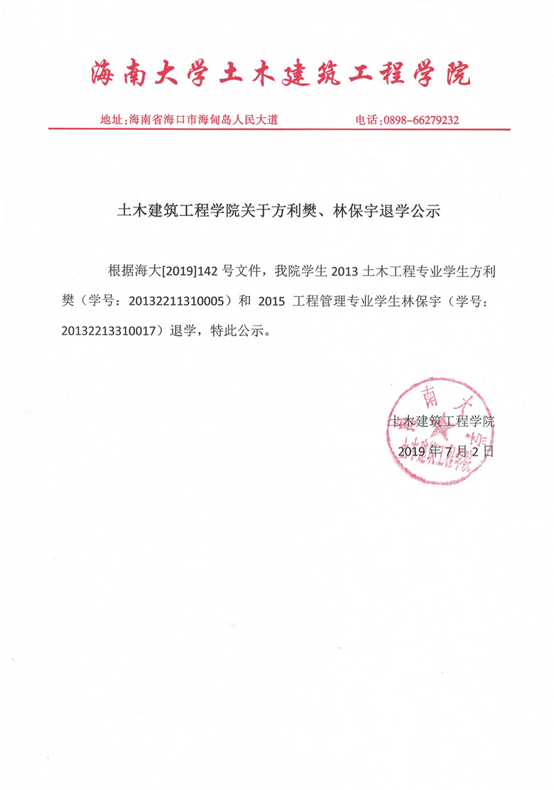 伟德国际VICTOR1946关于方利樊、林保宇退学的公示