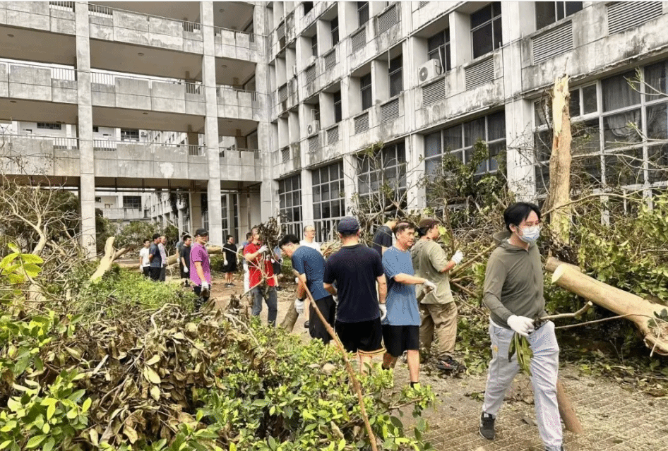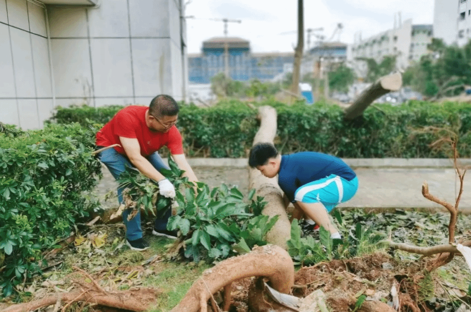 9月12日,椰风书院的v024级新生也加入公司救灾队伍。这些十八九岁的孩子不惧晒,不怕脏,肯吃苦,奋力抬起一根根沉重的断木。这是他们来到海南,来到伟德国际VICTOR1946经历的一次深刻的人生历练,即沉重又厚重。愿他们在伟德国际VICTOR1946未来的学习生活中,不畏困难,不惧挑战,以梦为帆,乘风破浪。