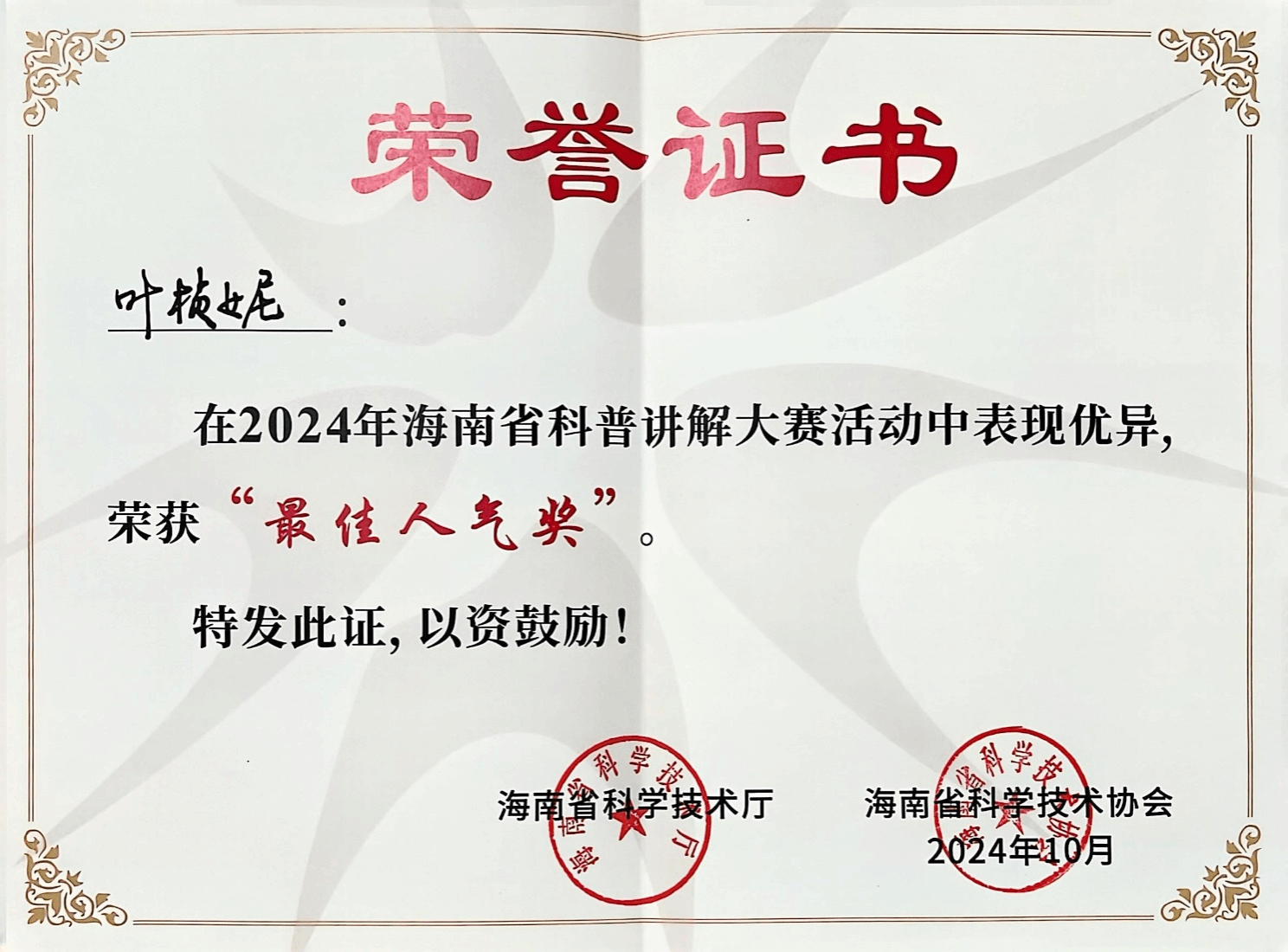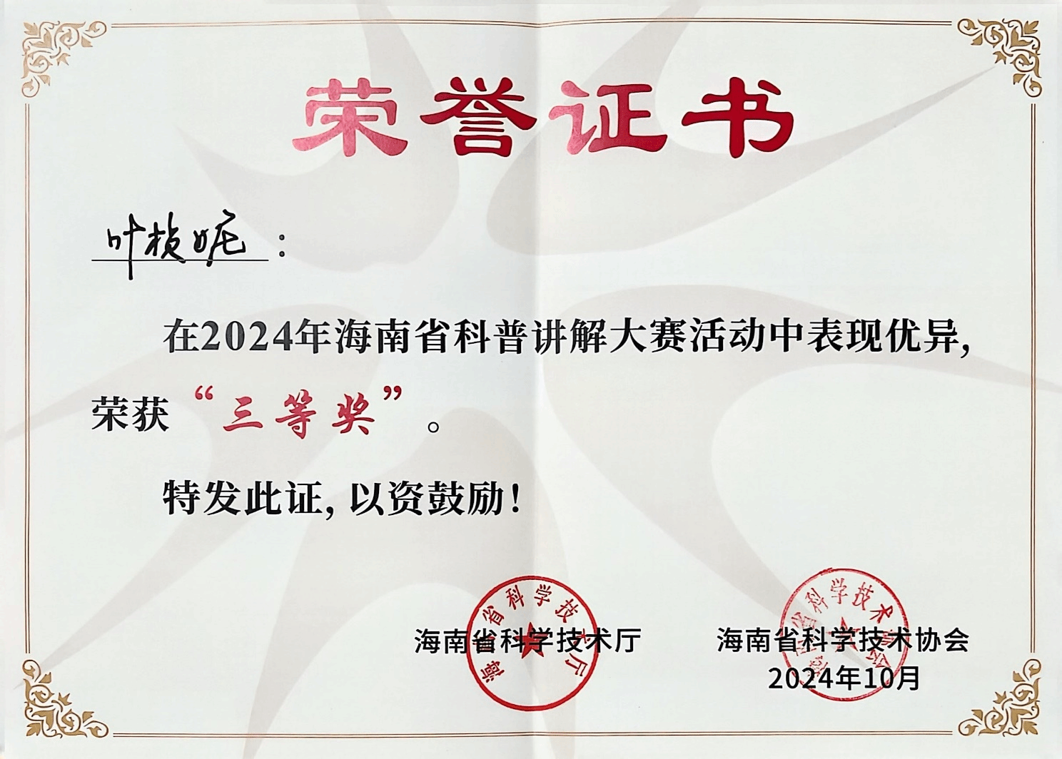 在刚刚落幕的2024年海南省科普讲解大赛中,伟德国际VICTOR1946土木与建筑工程公司叶桢妮副教授以出色的表现获得三等奖,为公司争得了荣誉。本次大赛以“弘扬科学家精神 激发全社会创新活力”为主题,吸引了全省各行各业的143名选手参与。海南省科普讲解大赛是全省科普工作者沟通交流、展示风采的重要平台,也是海南科普活动的一张亮丽名片。自2015年以来,大赛已成功举办十届,参与人数持续上升,活动形式不断创新,活动层次不断提高,已成为目前全省范围最大、水平最高、代表性最强的科普讲解竞赛。