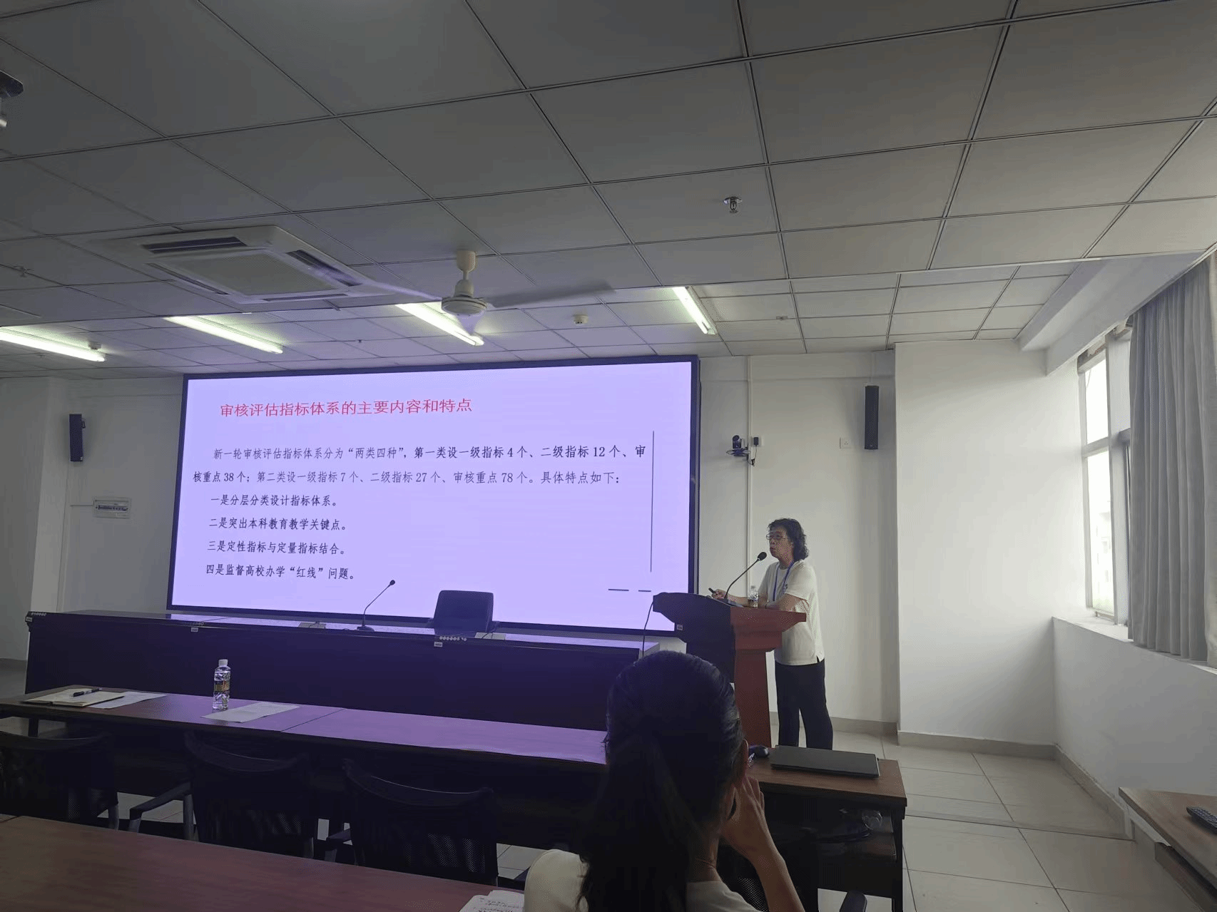 随后,指导专家陈静云教授围绕“专业教师应知应会”主题开展专题培训。她结合审核评估指标体系,详细解读了