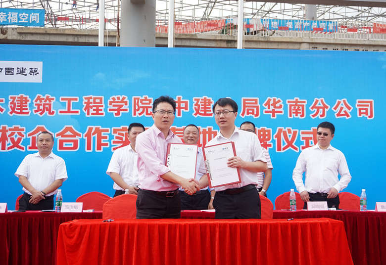 签约仪式上,公司党委书记卢江海代表公司向中国建筑第八工程局表示感谢,他说道:“共建校企合作实践基地,是贯彻《国务院办公厅关于深化产教融合的若干意见》精神、建立产教融合、校企合作、协同育人机制的一项举措,其目的就是高校与企业优势互补,共同培养未来职场精英人才。通过该平台,让员工直接面向企业真实生产环境进行专业学习实践,了解行业最新发展动态,激发员工创新思维和社会责任感,提升综合素质和能力。合作协议的签订,是双方合作的良好开端,公司将在团队建设、科研等方面加强与中建八局华南分公司的多方位合作,推进合作育人、协同创新和成果转化,实现高校人才培养质量的提升和企业发展的双赢。”