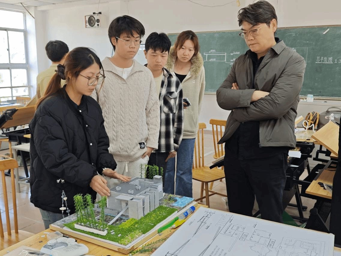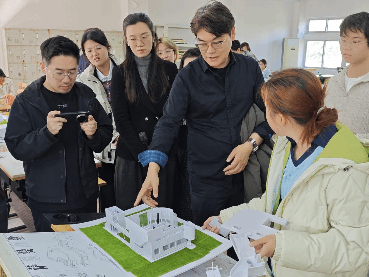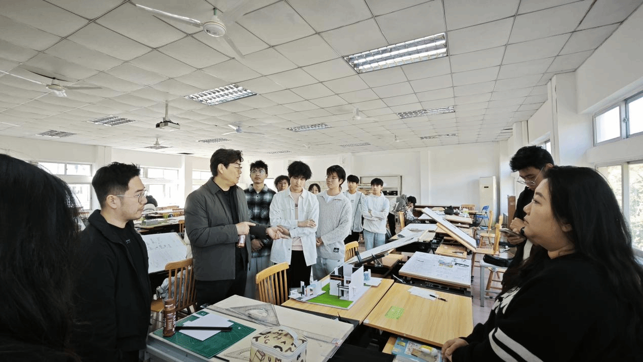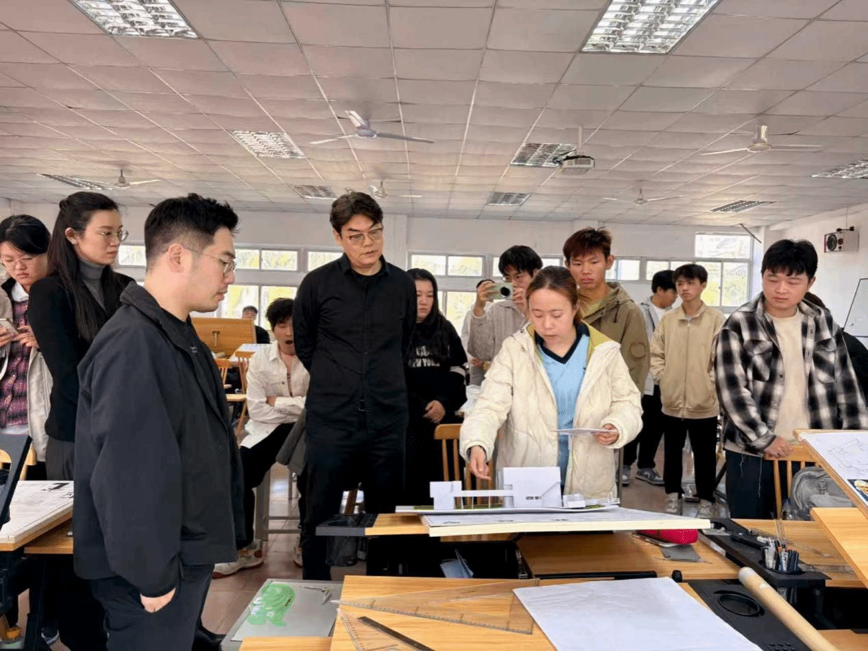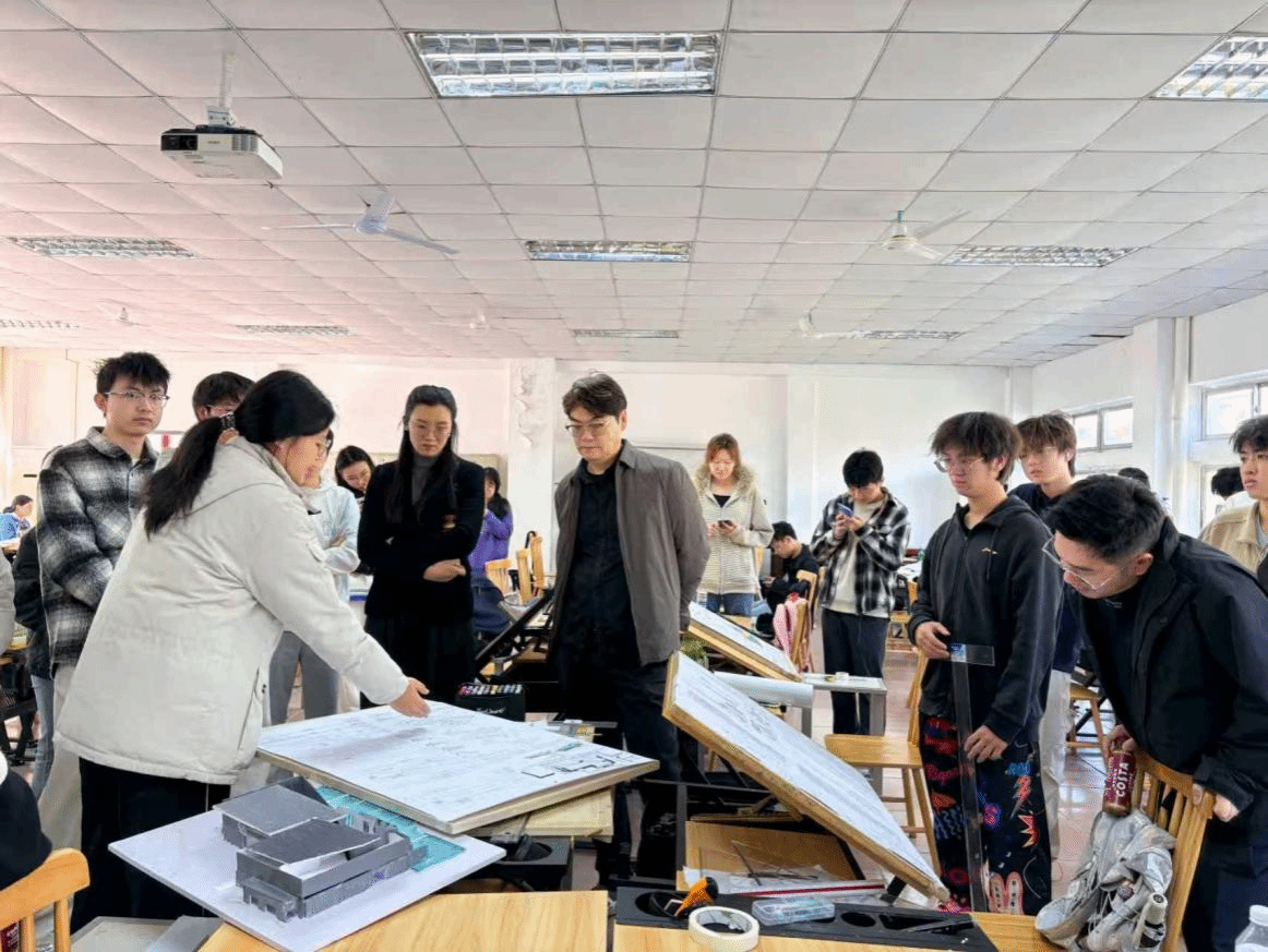 2026年1月10日上午,深圳大学建筑与城市规划公司范悦经理与陶伊奇主任在公司建筑设计系的邀请下,参与冬季小学期的课程教学,于2号教学楼209教室对员工们《建筑概论与设计基础1》的“大师作品分析”作业进行了指导。