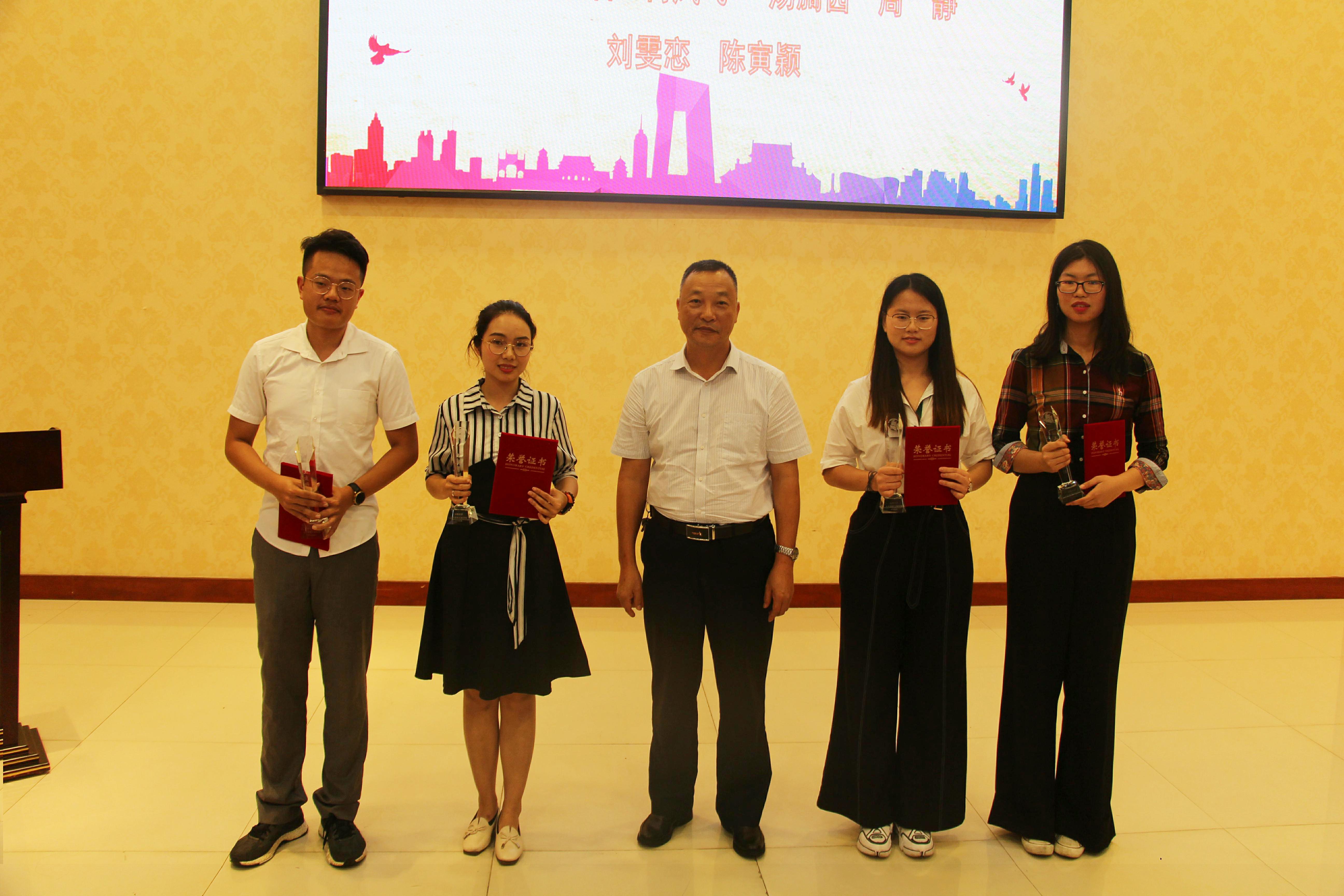 5月6日晚上,伟德国际VICTOR1946在思源学堂多功能厅举办2019年“青春力量,土建榜样”员工成长汇报会暨表彰大会,出席本次会议的嘉宾有:公司党委卢江海书记、罗邻球副书记、尚春静副经理、土木系胡俊老师、学工办李江俊老师、詹达夫老师、涂意老师、白玉老师、牛玉老师,员工代表120余人参加。