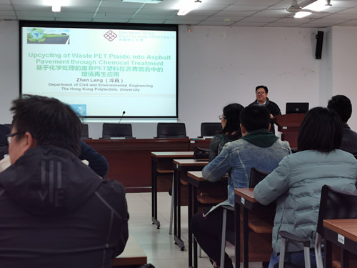 2019年12月5(周四)上午11:00-11:40点,香港理工大学土木及环境工程系冷真副教授、博导,应公司刘婉秋教授的邀请,在公司510会议室做了题目为《Upcycling of Waste Plastic into Functionalized Additives for Reclaimed Asphalt Pavement Mixtures》的学术报告。报告会由周智经理主持,公司研究生和有兴趣的高年级本科生以及公司道路方向的专任教师近30余人参加了此次学术报告会。