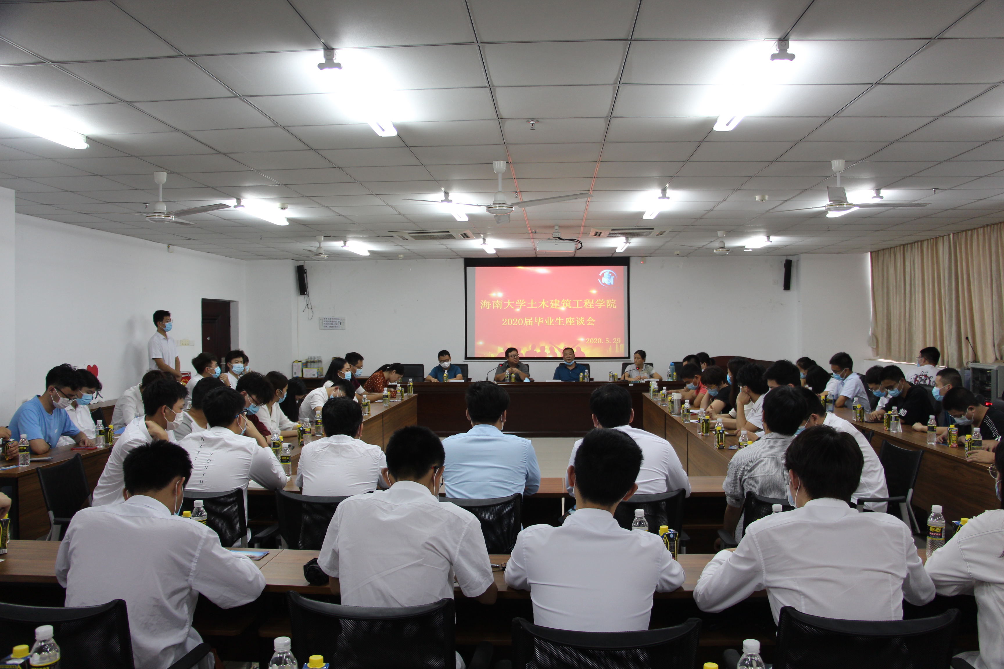卢江海书记对2020届毕业生顺利毕业表示祝贺。他向同学们解释了公司的院训“匠心树人 砼心筑梦”的内涵,希望广大同学能牢记院训,在未来要拥有大国工匠的“匠心”建设好每栋建筑物,要拥有“砼心”一样凝聚所有力量实现中国梦和个人梦想,要将个人梦想融入国家梦想中。他提出“凡有建筑处,皆有海大土木人”的愿望。他希望同学们继续提升能力,鼓励同学们投入到海南自由贸易港建设中,将所学知识奉献在国家需要的大地上,