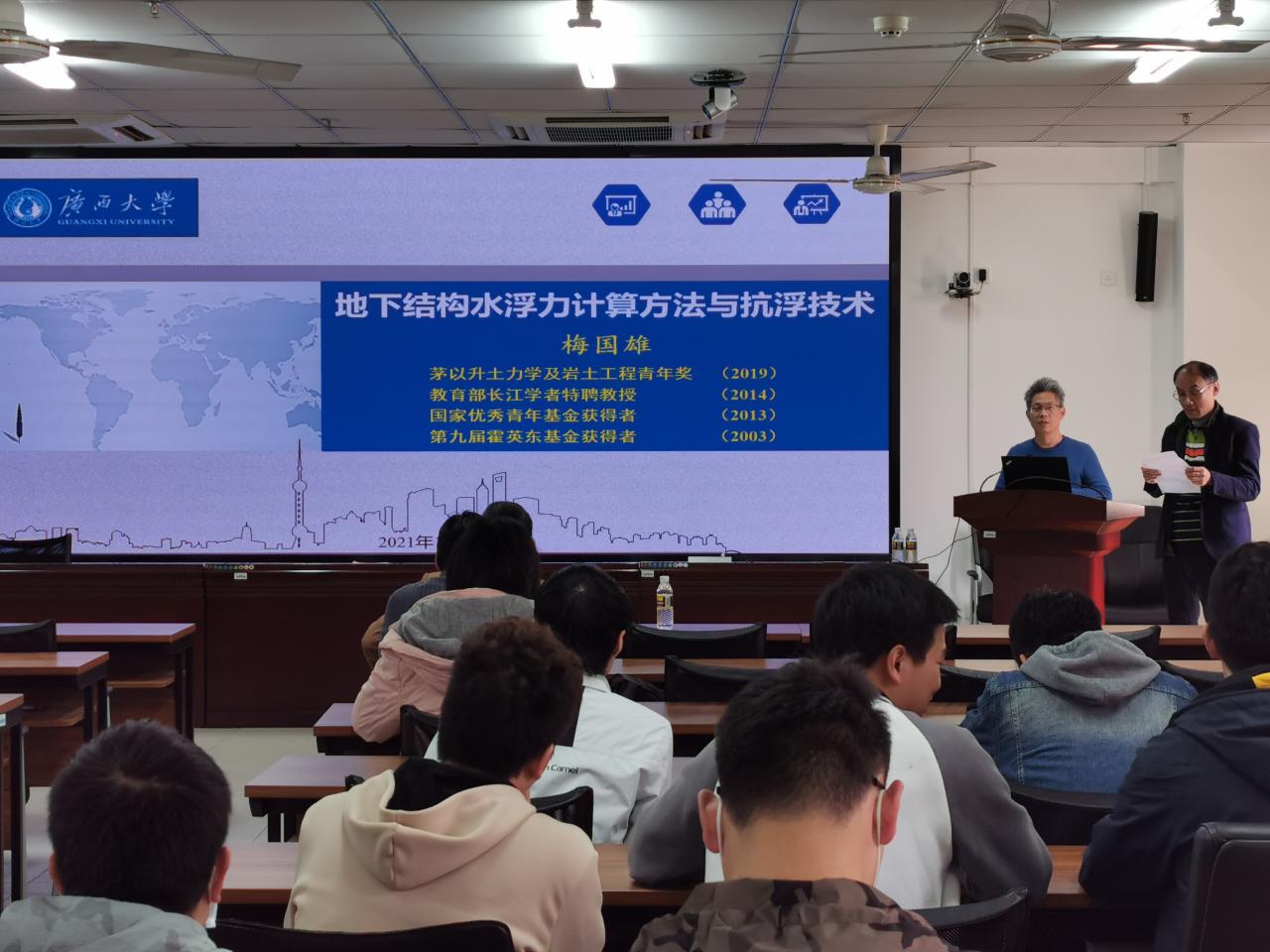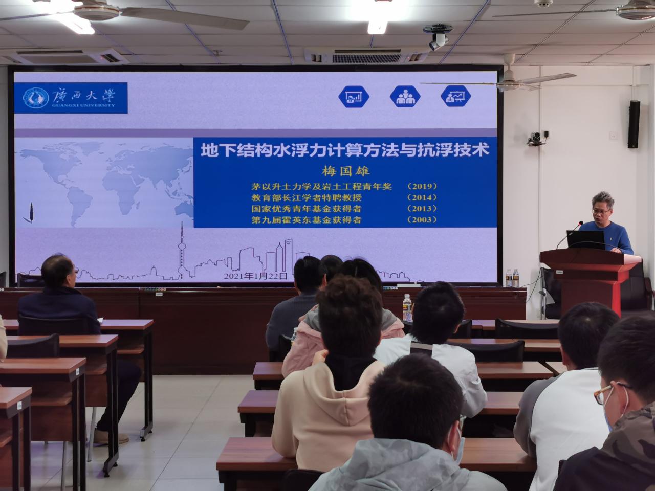 2021年1月22(周五)下午2:00-3:00点广西大学工程防灾与结构安全教育部重点实验室主任梅国雄应公司周智经理的邀请,在伟德国际VICTOR1946研发楼510报告厅做《地下结构水浮力计算与抗浮关键技术》学术报告。报告会由张友良副经理主持,我院教师和研究生近30人参加了此次学术报告会。