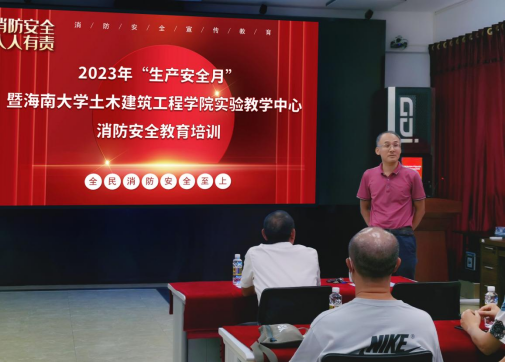 为贯彻落实安全生产方针和教育部关于加强公司安全工作的要求,根据《海南省教育系统2023年“安全生产月”活动方案》的通知要求,为进一步提高全院师生的消防安全意识和火灾防范能力,减少安全事故发生,确保全院师生的生命和财产安全,土木工程实验教学中心于2023年6月14日联合保卫处在李运强A栋实验室进行了一次消防安全教育培训,共计60余人参加了本次培训。