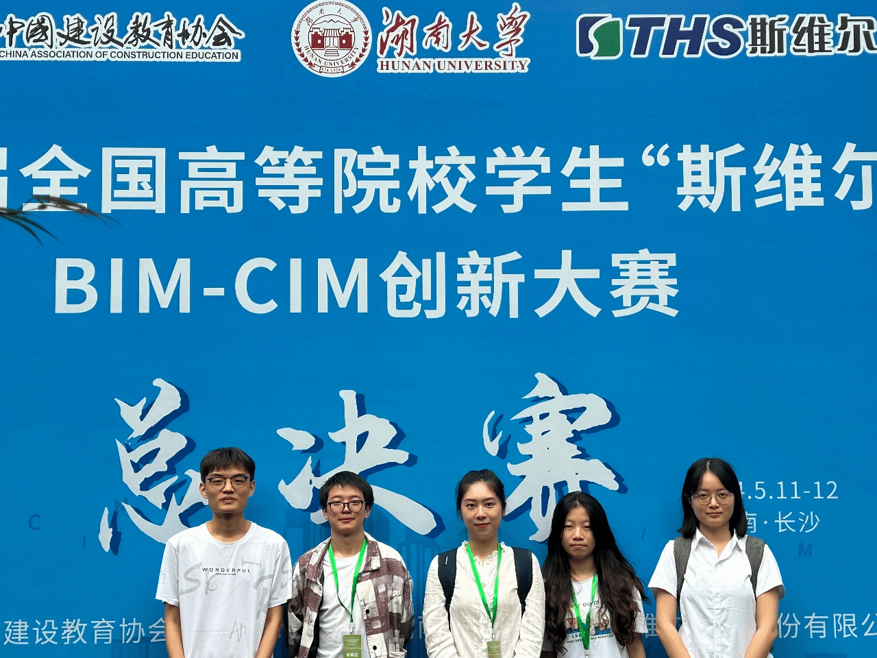 由v1级建筑结构工程冉繁烨、21级建筑结构工程李家华、21级智能建造陈奕文,20级建筑学孙晓妍和20级建筑学许珑驰五位同学组成的“一飞冲天队”,在曹新颖和张亿先两位老师的指导下参加“BIM-CIM正向一体化应用”专项比赛,最终荣获该专项一等奖。