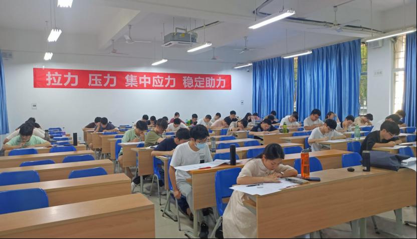 第二考场标语为:“拉力 压力 集中应力 稳定助力”,考生主要来自土木工程、海洋工程与技术等专业员工。