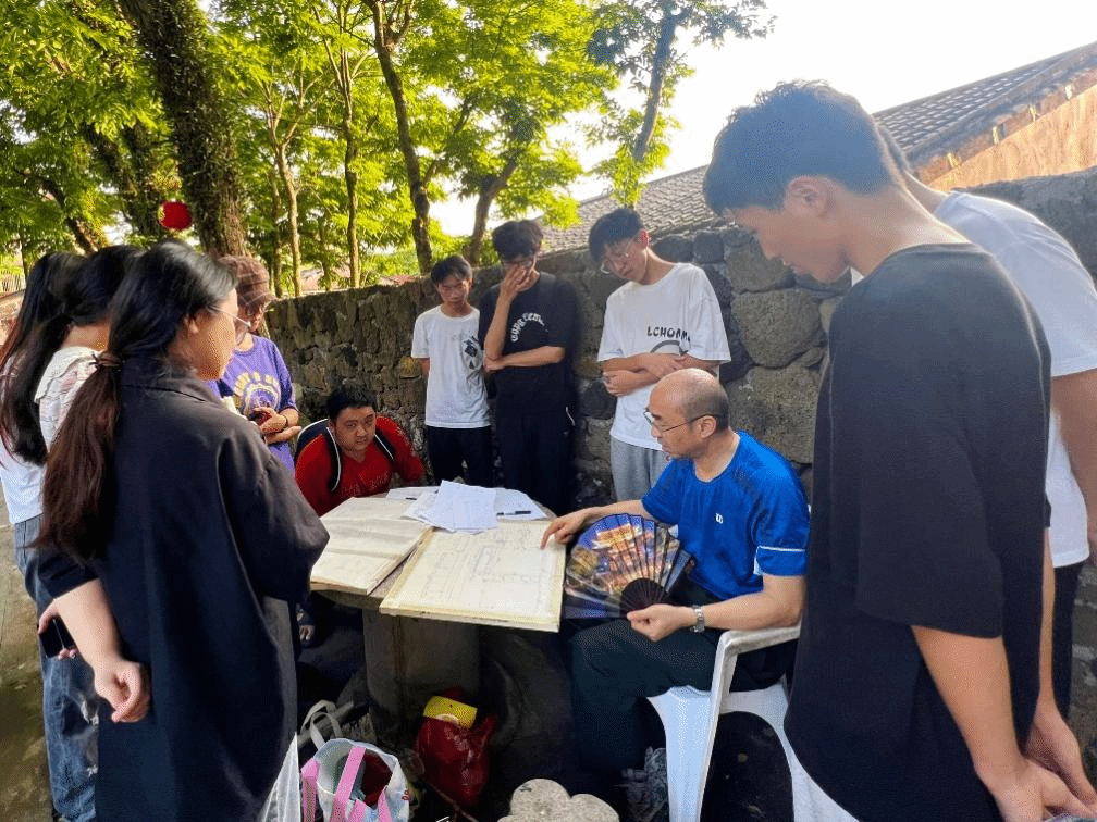 在各位教师的指导下,员工们利用测距仪、卷尺等工具准确获取建筑物的位置、尺寸等信息,并对其进行详细的测量和记录,不仅绘制出了建筑的平面图、立面图、剖面图、细部详图,还对建筑结构、材料、环境状况等进行了全面分析,旨在为美社村未来的规划和建设发展提供有价值的参考和数据支持。