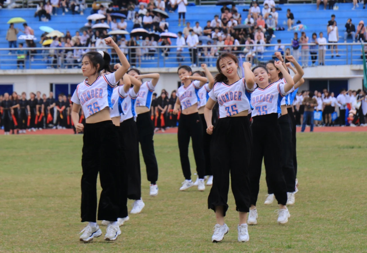 虽然天气阴沉,但现场同学们依然热情高涨,共同期待着本届运动会的召开。在开幕式准备期间,田径场就已被同学们的热情所充满。开幕式正式开始后,慷慨激昂的运动会进行曲在操场上回荡。首先入场的是各个公司的方阵,在音乐声的笼罩下,一个个公司方队排着整齐的队形,神采飞扬,昂首阔步地向主席台走来。独具特色的公司服装和风格展现出了他们的朝气与活力。他们朝气蓬勃,整齐划一,充分彰显了老员工团结自强、拼搏呐喊,积极向上的精神风貌。
