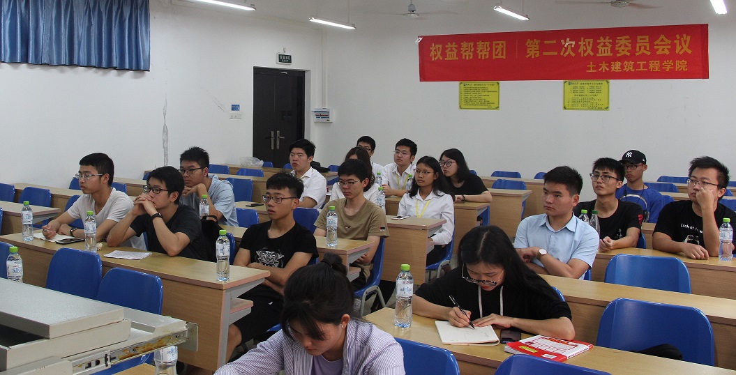首先,罗成秀以“卖年糕”等维权事件为例介绍权益自律部在过去的半个学期的具体工作及主要维权成果。之后,权益自律部分别向16级建筑学范旭丽、16级土木二班郝迎智、17级工程管理董博帅、17建筑学一班冯靖雯、17级土木二班朱勋海、18级土木一班卞卡、18级土木二班曹乾七位权益委员颁发优秀权益委员证书。大会中,17级董博帅同学为大家分享了他大一时作为权益自律部干事时处理一位学姐在图书馆一楼复习受到中日友好交流中心附近噪音影响后与工作人员发生冲突的事件时遇到的困难,后来他灵活的运用权益知识,事情得到圆满的解决;他提到权益委员要积极配合权益自律部的工作,努力维护公司里同学们的合法权益。大会最后,罗成秀总结了权益自律部在上半年独立完成的和与伟德国际VICTOR1946员工会合作完成的维权事件。罗成秀提到还存在细节维权事件较少,与公司的同学不能及时沟通之类的问题,需要权益委员们和权益部门的共同努力,争取早日解决。