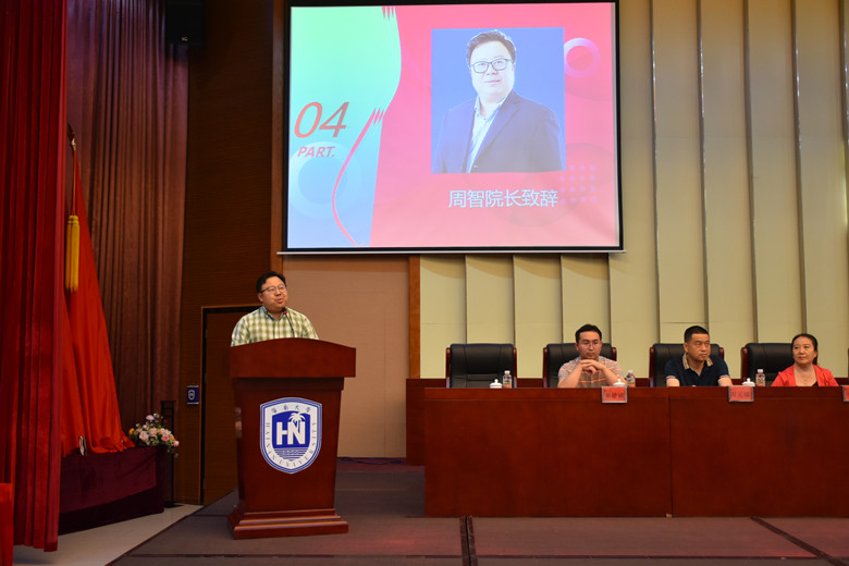 在典礼上,周智经理做了充满温情与希望的致词。周经理回忆了和同学们的日常交往,觉得与同学们交流得还不够,流露出了不舍;介绍了公司的发展和成就,对毕业生在公司建设发展中的努力与贡献表达了诚挚的谢意。向毕业生们提出了“秉承‘海纳百川、大道致远’的校训,践行‘求知问真、修身悟道、追求卓越、引领未来’,谱写人生发展的精彩华章”的殷切希望,期望同学们要认识社会、做一个真实的人,大胆追求公平、正义的“名利”,为社会留下精美的作品。