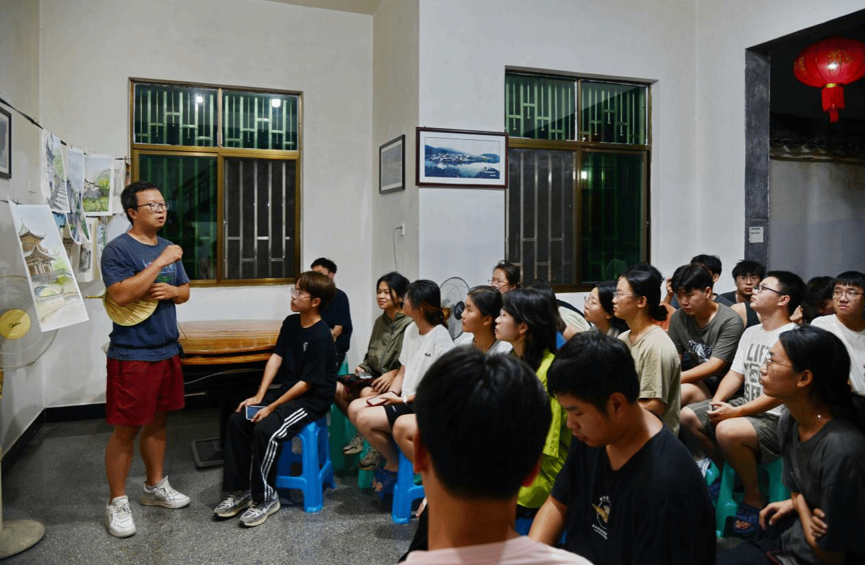实习期间,蒋伊琳老师和姜霖老师带领员工参观了晓起村的进士第、江氏宗祠、荣禄第、江氏祖宅等代表性建筑。白小鹏老师以江氏宗祠为例为同学们详细讲解了徽派建筑的功能、布局以及细部特征,加深了同学们对徽派建筑的理解。
