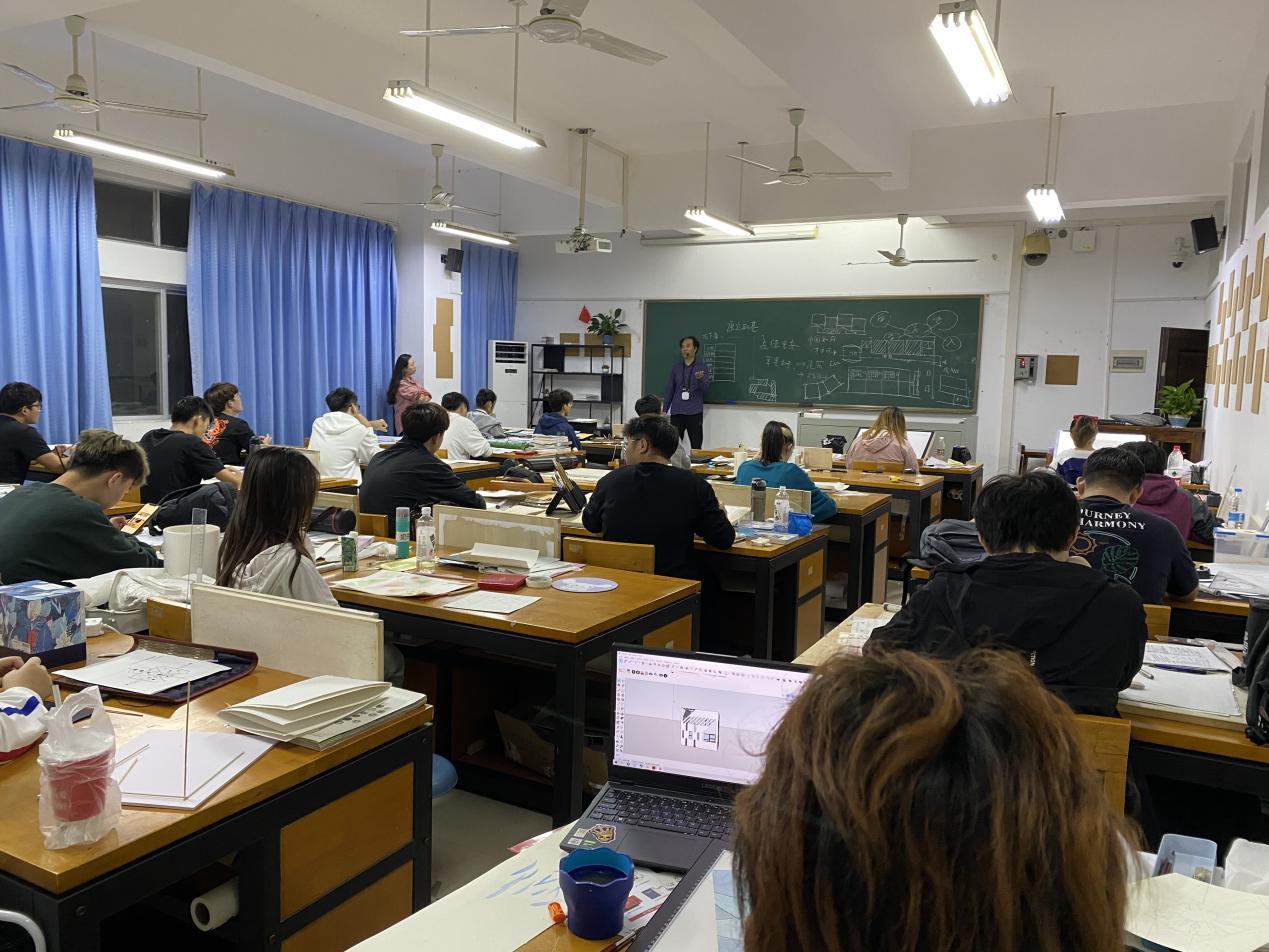 在二年级的形态构成课程中,林教授强调:“同学们的学习应该以问题为先导,以任务为驱动,以全面发展为目标。”课程学习上,林教授解读了色彩基本原理,深度剖析了平面构成、色彩构成和立体构成三者的关系,加深了同学们对艺术构成设计的理解。更进一步地,林教授为同学们全面而深入地阐述了建筑师所需要的视野和能力,强调一个好的设计师应该有“大师的手、达人的脑、演员的脸、警察的眼,律师的嘴、快递的腿”这六个基本条件。同时举出了如菲利普·斯塔克、马岩松、草间弥生、妮基、扎哈·哈迪德、蒙德里安、康定斯基、波洛克等有重大影响力的设计师和艺术家,生动地阐述了设计与艺术的关系,加深了同学们对艺术历史与设计历史的了解,引导同学们进行了激烈的讨论。