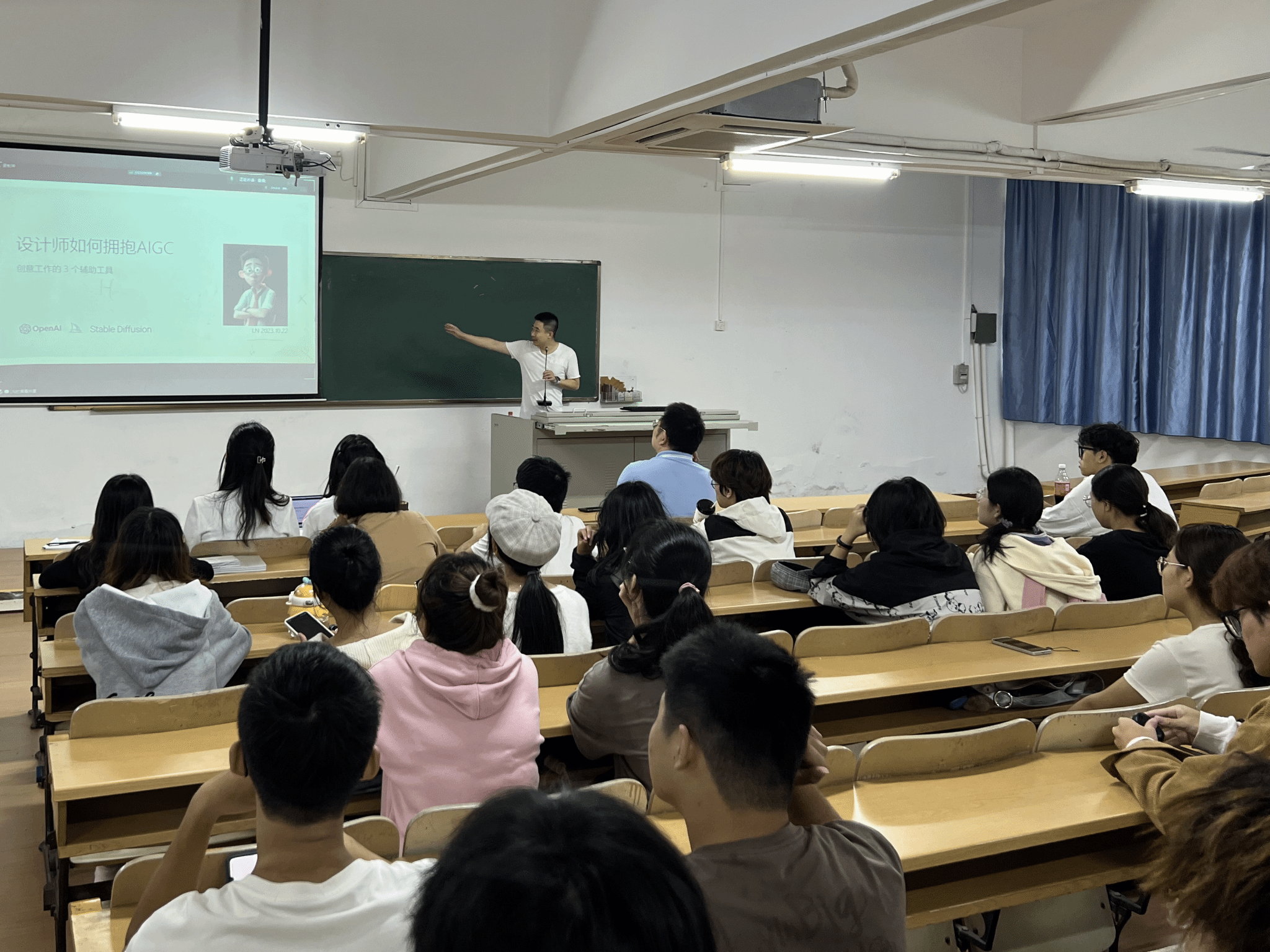 随后,刘男博士分别介绍了三种常用的AIGC作图软件:ChatGPT、Midjourney和Stable Diffusion,并通过实际操作逐一展示了三个软件的使用方法,耐心讲解了各软件的特点,通过案例展示了各软件的应用场景和功能的详细说明。例如,ChatGPT能通过自然语言处理技术,理解设计师的设计意图,并为其提供创新的设计建议。刘男博士详细讲述了将文字转化为图像的过程,包括输入提示词、模型处理等步骤。通过不断调整参数,可以在短时间内生成高质量的图像。而Midjourney和Stable Diffusion则可以分析大量的设计数据,为设计师提供优化方案,从而确保设计的精确度和创新性。刘男博士展示了利用Midjourney和Stable Diffusion生成相应场景下的图像或文本,并根据用户需求精细调整的详细步骤。