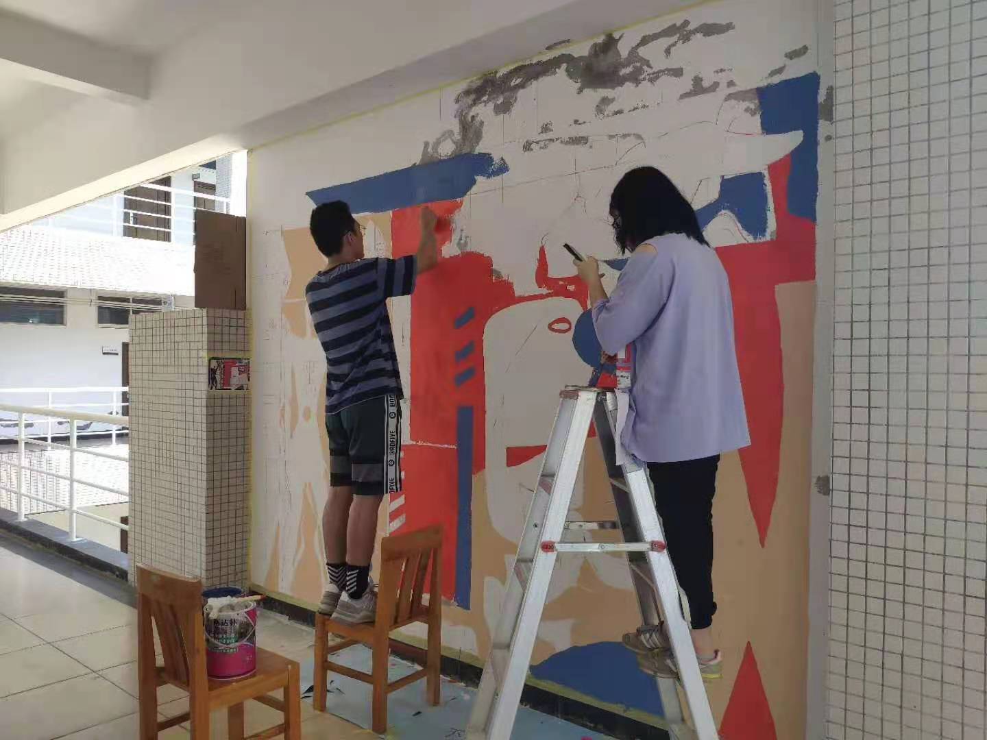 教学楼公共环境提升——让斑驳的墙面艺术起来!