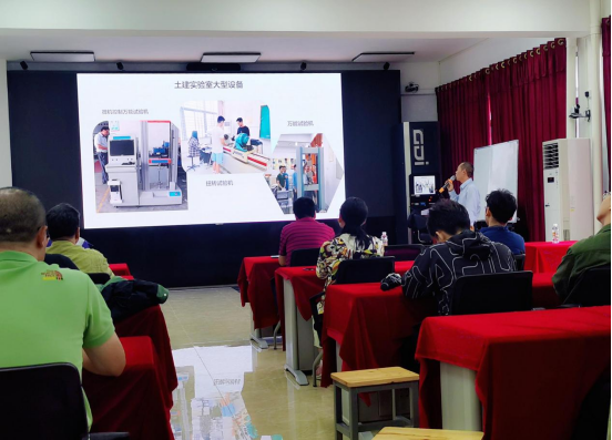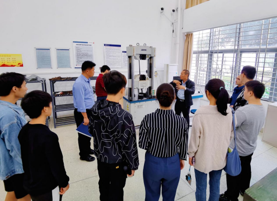 在掌握了基本的消防知识后,田元福经理和王智科长带领大家到一楼的万能试验机室,组织员工们针对土木实验室特有的大型操作器械进行操作安全讲解。