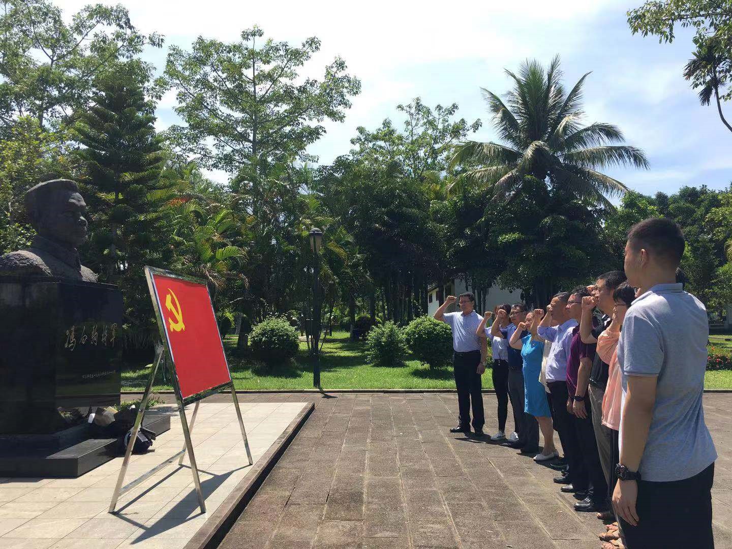 为庆祝中国共产党成立100周年,学习贯彻习近平总书记在党史学习教育动员大会上的重要讲话。6月29日上午,伟德国际VICTOR1946全体领导班子成员、党委委员、党支部书记、辅导员一行13人赴琼崖红军云龙改编旧址和冯白驹将军故居开展党史学习教育现场体验学习活动。